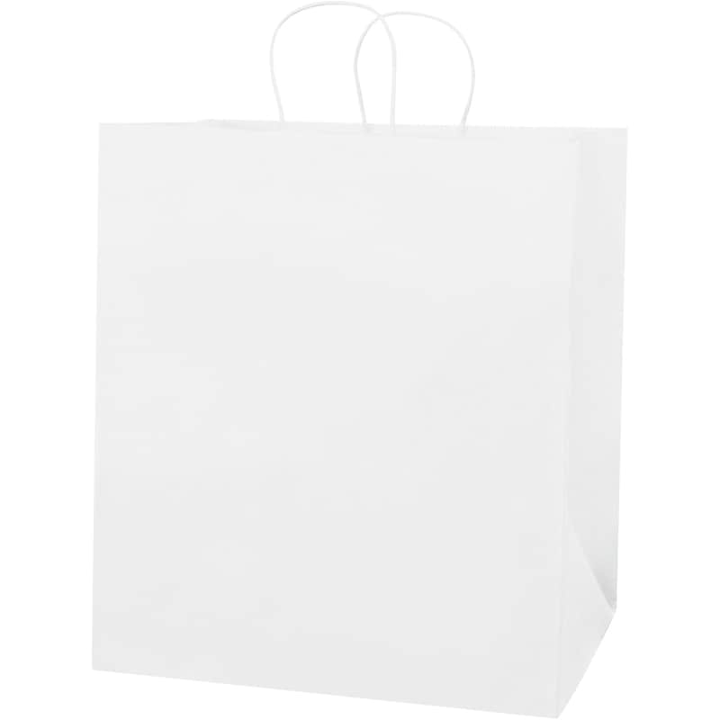 Heavy-dutyPaper Shopping Bags make packing purchases easy. AttractiveBags make a quality impression. Durable twisted paper handles make bags easy to carry. Bags have a square bottom which allows them to stand alone for easy packing. Reusable and recyclable.