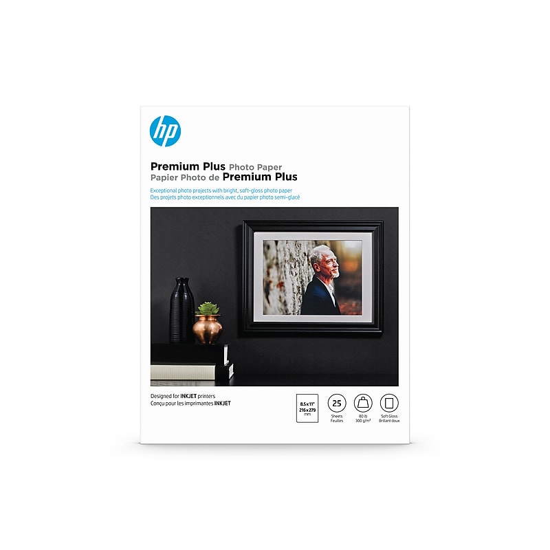 Give your photography business a professional edge by printing photos in high gloss with these HP Premium Plus photo papers. Coated to resist smudging, sticking, and moisture, these fade-resistant papers retain the superior quality of your photos for posterity. Crafted for a luxurious feel with a strong keepsake element, these 11. 5 mil-thick papers are ideal for special events such as weddings, graduation or christening ceremonies. Produce impressive results on all types of inkjet printers with these photo papers. Soft gloss finish photo paper. Dimensions: 8. 5", 216 279 mm. 11. 5 mil thickness for heavyweight photos that last generations. Compatible with all inkjet printers for ease of use. Sourced from environmentally-friendly recyclable material that reduces pollution and waste. FSC certification confirms that the source material comes from a sustainable resource. Resists smudging, sticking, moisture and fading to preserve images for posterity. Brightcolor offers a stark contrast for clear printing. Fast drying, water and smudge resistant photos. Promises the same finish, weight and thickness of a traditional photo. Vibrant colors and deeper blacks make for high-quality, long-lasting photos. 25 sheets/pack. 11. 5 mil thick, ensures professional-quality photos. Soft-gloss finish for bright colors and skin tones. Professional quality, looks and feels like a true photograph. Soft gloss finish renders vibrant colors. 11. 5 mil thickness for the sturdy feel of traditional photos. Produces photos that resist fading for generations*. Unique coating prevents prints from sticking when stacked. Superior professional grade finish, weight and thickness. Brightfor superb color contrast and accurate reproduction. Photo paper is recyclable and certified by FSC that paper fibers are responsibly sourced from sustainable forests. HP Premium Plus Photo paper measuring 8 1/2" comes with soft glossy finish that maximizes the color intensity, sold as 25 per pack.