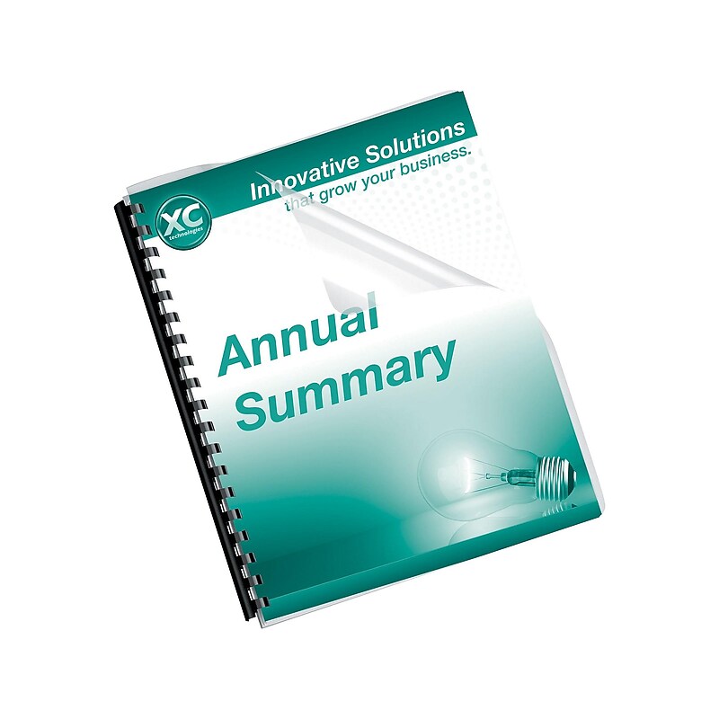 Display presentations neatly with these binding covers. Featuring an unpunched layout, these covers can be easily adapted into almost any binding system, while the transparent front draws attention to the title page. These Fellowes Crystals oversized letter-size presentation binding covers come with 25 to a pack and are made from heavy-duty material that stands up to daily wear and tear, providing long-term use. Presentation covers help you organize office documents. Binding size: 8. 75"W x 11. 25"H.presentation covers are made of polyvinyl chloride/PVC to offer durability. Unpunched covers adapt to any binding system. Square corners provide added protection. Tear-resistant material keeps documents looking good. 25 per pack. Protect reports, graphs, and other documents with this 25-pack of Fellowes Crystals oversized letter-size presentation binding covers.