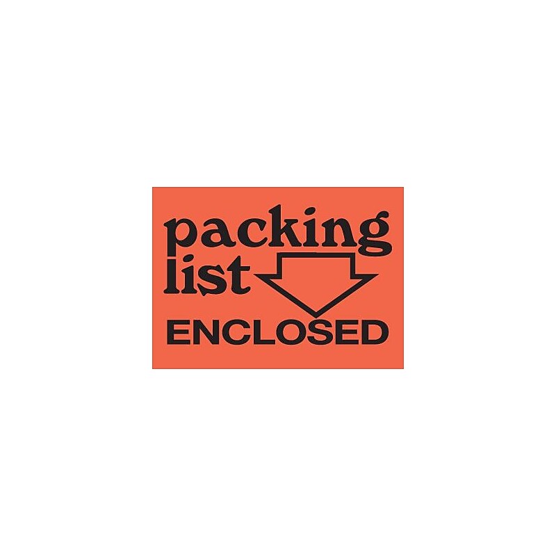 Tape Logic "Packing List Enclosed" Shipping label measuring attracts attention by boldly displaying instructions as well as warnings. Label is pressure sensitive for firm adhesion, sold as 500 per roll. Shipping labels boldly display instructions and warnings. Self adhesive. 500 labels per roll. Alert shippers and customers with these self-stick shipping labels.