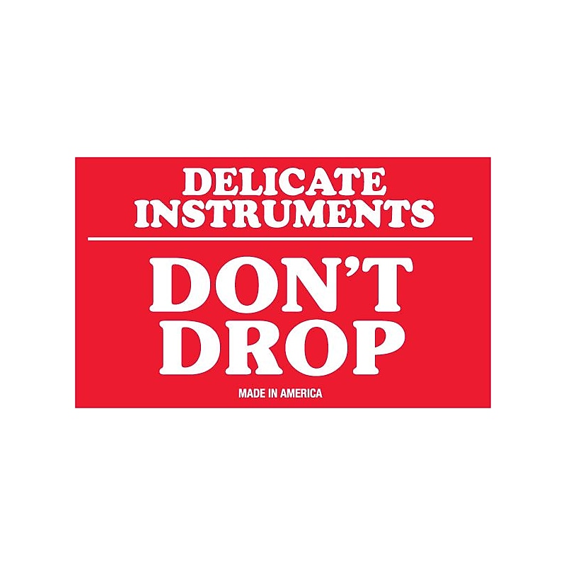 Tape Logic "Delicate Instruments - Do Not Drop" Shipping label measuring attracts attention by boldly displaying instructions as well as warnings. Label is pressure sensitive for firm adhesion, sold as 500 per roll. Shipping labels boldly display instructions and warnings. Self adhesive. 500 labels per roll. Size: 3"L 5"W.white. Inform your shipping company of special handling procedures for your shipments.