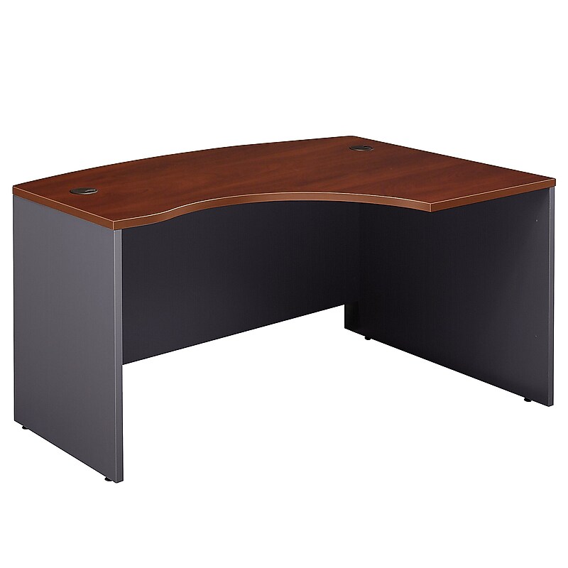 Bush Business Furniture Westfield Collection 60W x 43D Right Hand L-Bow Desk Shell for a classic styling with clean lines and extended modesty panels. Constructed with 100% thermally fused laminate for durability and superior resistance to scratches and stains. Create an expansive corner workstation with any Westfield Credenza or Return Bridge on the right hand side of the Desk. You'll enjoy the integrated wire management located within both desktop and leg grommets to conceal cables to keep your desk area uncluttered. Compensate for uneven floor surfaces with adjustable levelers. Meets ANSI/BIFMA test standards in place at time of manufacture. The Westfield Collection is backed by the Bush Business Furniture 10-Year Warranty. American made with U. S. and imported parts. Thermally Fused Laminate Over Composite Wood. All work Surfaces and leg end panels are 1" thick. Assembled Dimensions: 58 6/7"W x 42 7/8"D x 29 5/6"H. Meets ANSI/BIFMA standards for safety and performance. American Made with US and Import Parts. GSA Approved. Accepts any Credenza or Return Bridge on right side. Accepts Keyboard Tray or Articulating Keyboard Trays in corner position. All desk work surfaces feature wire management grommets which can accept Monitor Arm w/Post. Assembly Required. Backed by a Bush Business Furniture 10 year Manufacturer's Warranty. Ideal for a private or home office space, this commercial-grade Bush Business Furniture Westfield Desk offers a classic design at a lasting value.