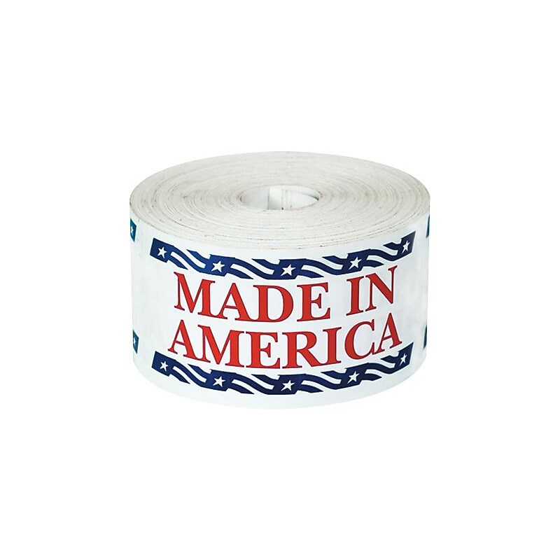 Made in America Shipping label measuring 2 1/2" is pressure sensitive and self-adhesive for strong adhesion. Label boldly displays instructions, sold as 500 per roll. Bold labels attract attention. Pressure sensitive, self-adhesive labels. Staples Brand 100% Satisfaction Guaranteed. "Made in America" Shipping label measuring 2 1/2" displays instructions boldly that attract attention, sold as 500 per roll.
