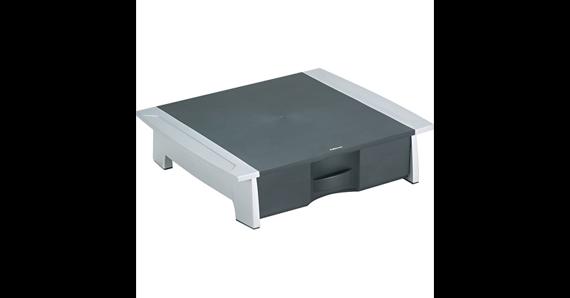 Keep your printer and paper in one central location with this printer stand. A pullout drawer offers storage for letter, legal, or A4 paper, so you can quickly reload during print jobs. A spacious platform accommodates a range of desktop printer and fax machine models for added versatility, while the sleekand silver color scheme brings a modern look to your workspace. This Fellowes Office Suites printer stand boasts sturdy construction to hold machines weighing up to 50 pounds. Printer stand elevates fax or printer to eye level, saves space, and offers storage for paper and other accessories. Lightweight but very sturdy plastic printer stand comes inand silver color scheme. Storage drawer keeps letter-, legal-, or A4-size paper handy for quick reloads. Non-skid rubber feet protect your worksurface from scratches or scuffs. Dimensions: 5. 25"H x 21. 25"W x 18. 06"D. Comes fully assembled for immediate use. Supports up to 50 lbs. 3-year manufacturer limited warranty. Maximize the available space on your desk with this Fellowes Office Suites printer stand.