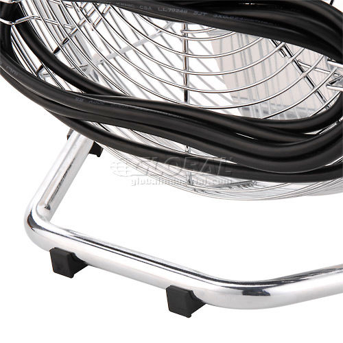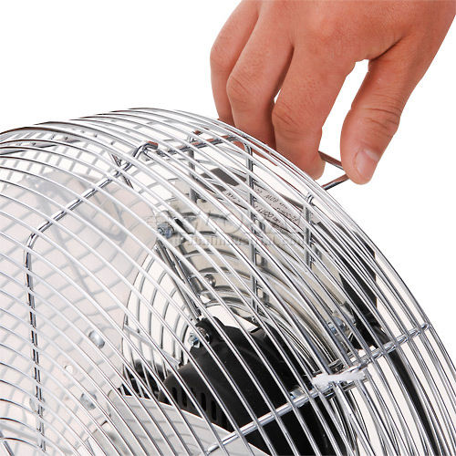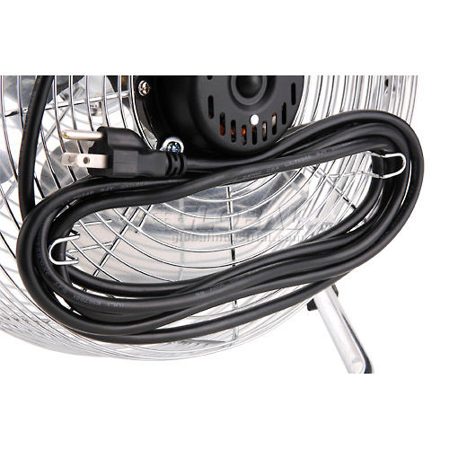 Floor fans feature a permanently lubricated 3-Speed, 120V sleeve bearing motor. Portable floor fans include 3 aluminum fan blades enclosed in chrome plated steel wire guards with a welded carry handle that acts as a cord wrap. Fan head pivots 360 for tilt angle adjustments. Includes 7'L cord. UL, cUL Listed and conforms to UL507 Standard. Horsepower rating based upon maximum speed/load. This product has limited warranty of 1 year.