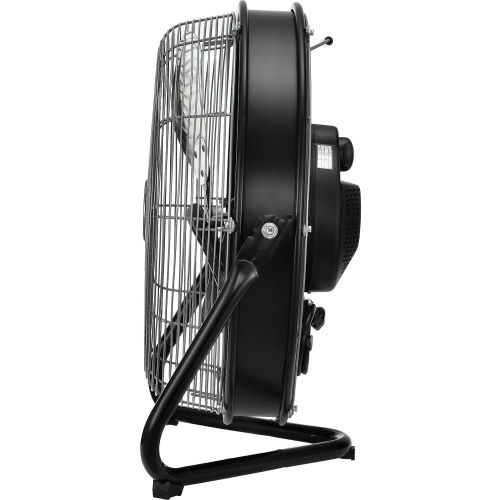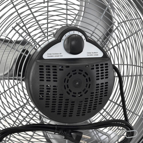 Features a permanently lubricated 3-speed, 120V sleeve bearing motor. When set for oscillation mode, the oscillation mechanism is directly connected to the fan blades, allowing for complete circular orbital oscillation inside the wire guards. This unique feature makes this unit a much safer option versus other oscillating floor fans as there are no moving parts outside the protective wire guards. The internal oscillation also makes the unit more compact and easier to place in tight fit locations while still maintaining maximum air moving functionality. There is a built in carry handle and cord wrap for added convenience and portability. Meets OSHA Standards. Unit us UL and cUL listed with a 1 year limited warranty and conforms to UL507 Standard.