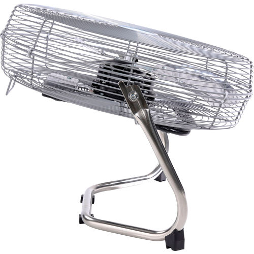 Industrial Floor Fan FLOOR FANS Style A - 18 Diameter Fan Floor fans feature a permanently lubricated 3-Speed, 120V sleeve bearing motor. Portable floor fans include 3 aluminum fan blades enclosed in chrome plated steel wire guards with a welded carry handle that acts as a cord wrap. Fan head pivots 360 for tilt angle adjustments. Includes 7'L cord. Meets OSHA requirements, UL, cUL Listed. 1 Year Limited Warranty. Horsepower rating based upon maximum speed/load.