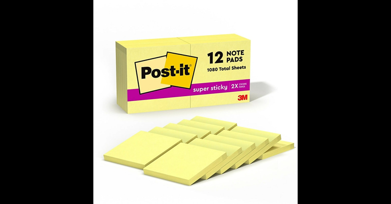 Post-it Super Sticky Notes in 3 in. 3 in. feature 2x the sticking power. Use for notes or reminders on doors, windows or walls. Unique adhesive reliably sticks and re-sticks so your message can stay front and center. Move your notes with you throughout the day. Classiccolor helps your note break through. Post-it Super Sticky Notes are recyclable and the paper in Post-it Super Sticky Notes is sourced from certified, renewable and responsibly managed forests. 12 Pads/Pack, 90 Sheets/Pad. 3 in. 3 in. , Canary Yellow. Post-it Super Sticky Notes have 2X the sticking power. Post-it Super Sticky Notes stick and re-stick so your thoughts get noticed. Use for reminders on doors, windows and walls. 12 Pads/Pack, 90 Sheets/Pad. Post-it Super Sticky Notes are recyclable. The paper in Post-it Super Sticky Notes is sourced from certified, renewable and responsibly managed forests. Download the free Post-it App. If working or learning remotely, the Post-it App can capture & share ideas, track tasks, or create colorful calendars. Share across platforms like Dropbox, Trello, PowerPoint, or sync across your devices.