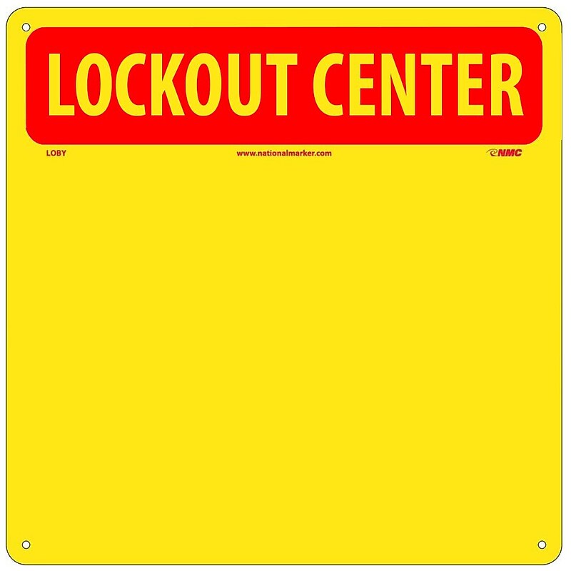 Communicate the importance of lockout safety while storing lockout/tagout supplies - all in the same place. Lockout Tagout. Complies With All Safety Regulations. The Lockout Center, Yellow Backboard With Hooks And Supplies, 14X14 by National Marker is the perfect solution for all of your Caution & Hazard Signs Needs.
