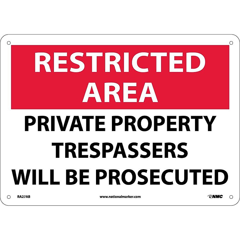 Buy Notice Signs; Restricted Area, Private Property Trespassers Will Be Prosecuted, 10X14, .040 Aluminum for $26.95 at @ Globalindustrial.com