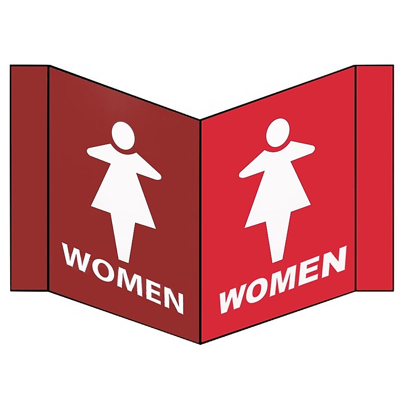 These signs provide an alternative to flat signs, they stand out from the wall allowing for viewing from multiple directions. 45 Degree Angle. 3mm PVC Plastic. Complies With All Safety Regulations. The Visi Sign, Women, White, 8X14 1/2, . 125 PVC Plastic by National Marker is the perfect solution for all of your Caution & Hazard Signs Needs.