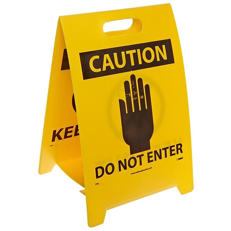 Reversible floor signs with two messages can be reversed when needed. This waterproof sign folds easily for convenient storage. 20 X 12. Corrugated Plastic. Complies With All Safety Regulations. The Floor Sign, Dbl Side, Caution Do Not Enter Caution Keep Out, 20X12 by National Marker is the perfect solution for all of your Caution & Hazard Signs Needs.