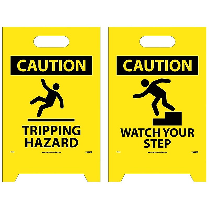 Reversible floor signs with two messages can be reversed when needed. This waterproof sign folds easily for convenient storage. 20 X 12. Corrugated Plastic. Complies With All Safety Regulations. The Floor Sign, Dbl Side, Caution Tripping Hazard Caution Watch Your Step, 20X12 by National Marker is the perfect solution for all of your Caution & Hazard Signs Needs.