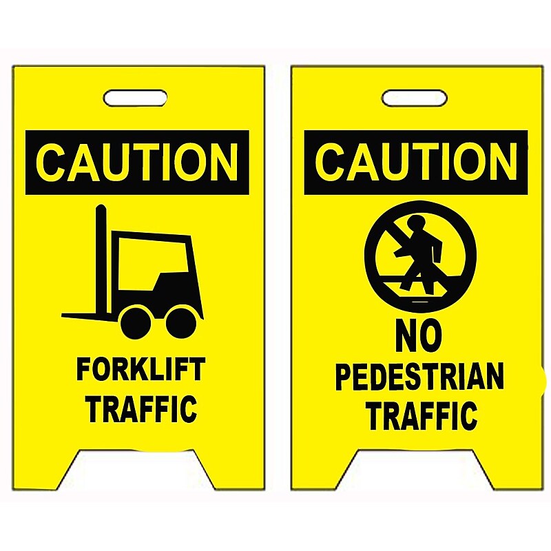 Reversible floor signs with two messages can be reversed when needed. This waterproof sign folds easily for convenient storage. 20 X 12. Corrugated Plastic. Complies With All Safety Regulations. The Floor Sign, Dbl Side, Caution Forklift Traffic Caution No Pedestrian Traffic, 20X12 by National Marker is the perfect solution for all of your Caution & Hazard Signs Needs.