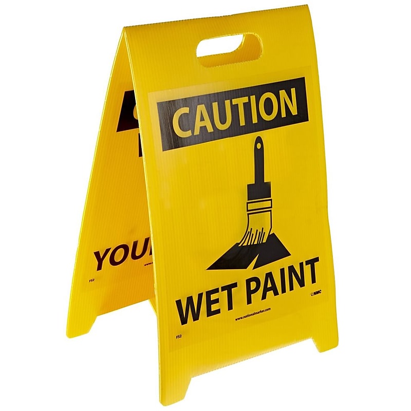 Reversible floor signs with two messages can be reversed when needed. This waterproof sign folds easily for convenient storage. 20 X 12. Corrugated Plastic. Complies With All Safety Regulations. The Floor Sign, Dbl Side, Caution Watch Your Step Caution Wet Paint, 20X12 by National Marker is the perfect solution for all of your Caution & Hazard Signs Needs.