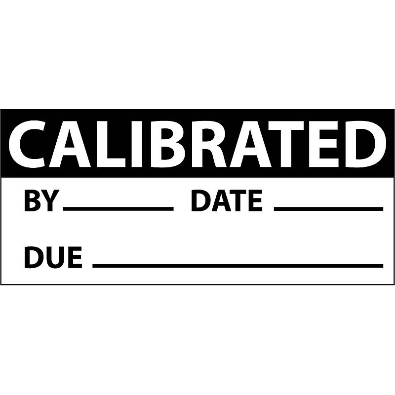 Use labels to remind quality testing is to be maintained on equipment or product. Labels are easy to update, simply write-on dates and initials with pen. Dimensions: x 2 1/4". Material: Pressure sensitive vinyl. Color: Black/white. 27 labels/pack. Use labels to remind quality testing is to be maintained on equipment or product. Labels are easy to update, simply write-on dates and initials with pen. Adhesive Vinyl. Complies With All Safety Regulations. National Marker " Calibrated" Inspection label in black/white color measures x 2 1/4" and is made of adhesive vinyl material for added durability.