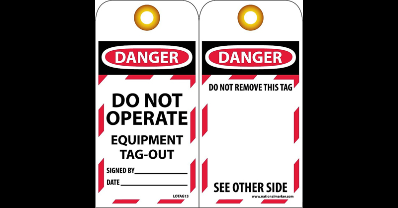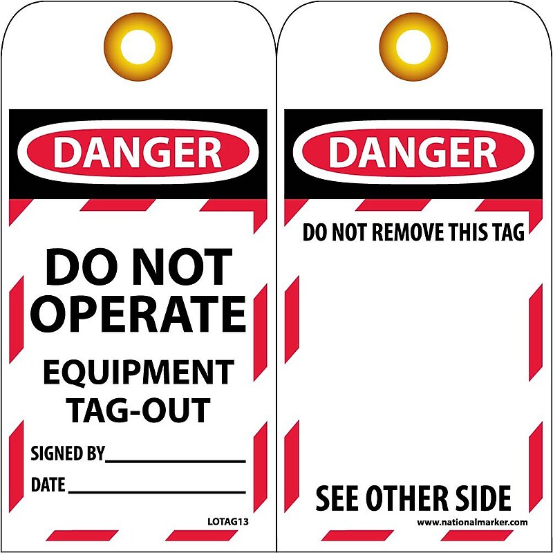 Prevent accidental or unexpected startup or release of stored energy when working on equipment and machinery. Sold 10 per pack. Unrippable Vinyl. Complies With All Safety Regulations. OSHA Compliant. National Marker " Danger Do Not Operate Equipment Tag Out. . " Lockout tag measures and is made unrippable vinyl material for added durability.