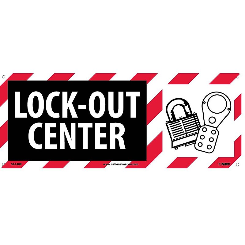 Communicate the importance of lockout safety while storing lockout/tagout supplies - all in the same place. Rigid Plastic. 7"x17". Complies With All Safety Regulations. National Marker "Lock Out Center " Safety sign with graphic measures 7" x 17" and is made rigid plastic material for added durability.