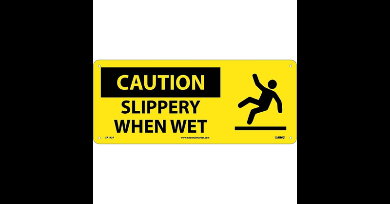 Emphasize your safety message with the addition of an appropriate graphic. Rigid Plastic. 7"x17". Complies With All Safety Regulations. National Marker "Slippery When Wet" Safety sign with graphic measures 7" x 17" and is made rigid plastic material for added durability.