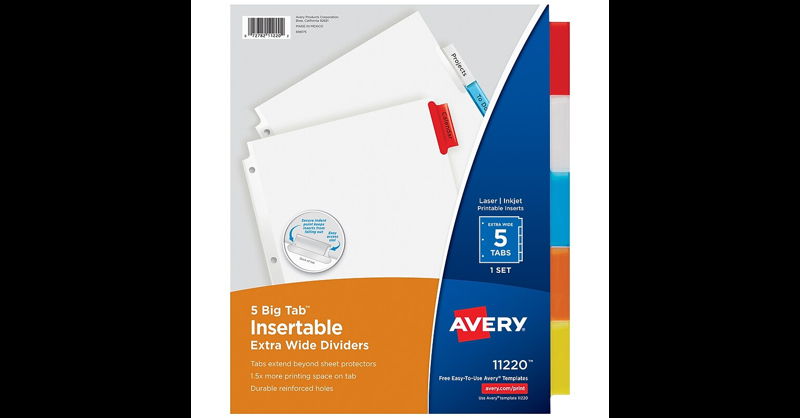 Buy Avery Big Tab Extra Wide Insertable Paper Divider, 5 Tabs, 1 Set () for $4.90 at @ Globalindustrial.com
