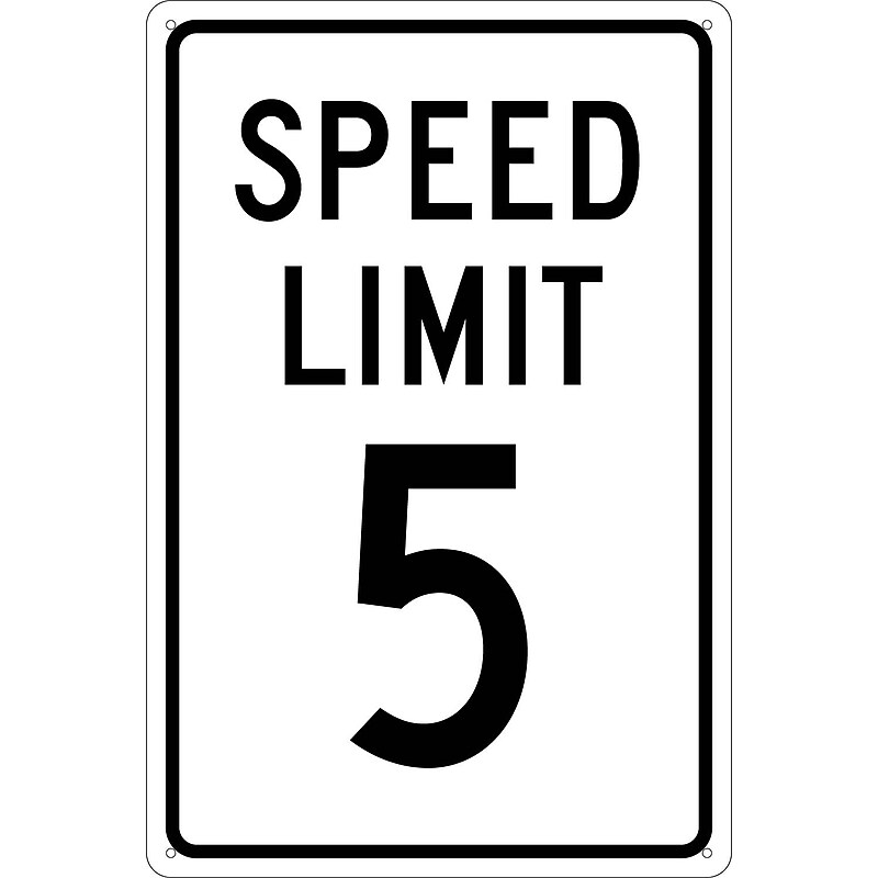 In 2008, MUTCD released a new regulation for traffic signs requiring an upgrade in retroreflectivity. In additional to these reflective traffic signs, additional sizes and materials are available for facility and private road use. High Visibility. 18"x12". Complies With All Safety Regulations. National Marker "Speed Limit 5" Safety sign measures and is made 0. 040" aluminum material for added durability.