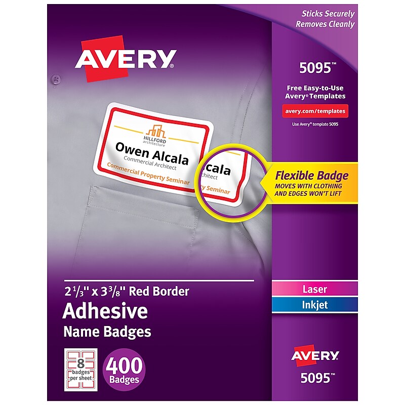 Buy Avery Flexible Laser/Inkjet Name Badge Labels, 2 1/3" x 3 3/8", White with Red Border, 400 Labels Per Pack (5095) for $92.95 at @ Globalindustrial.com