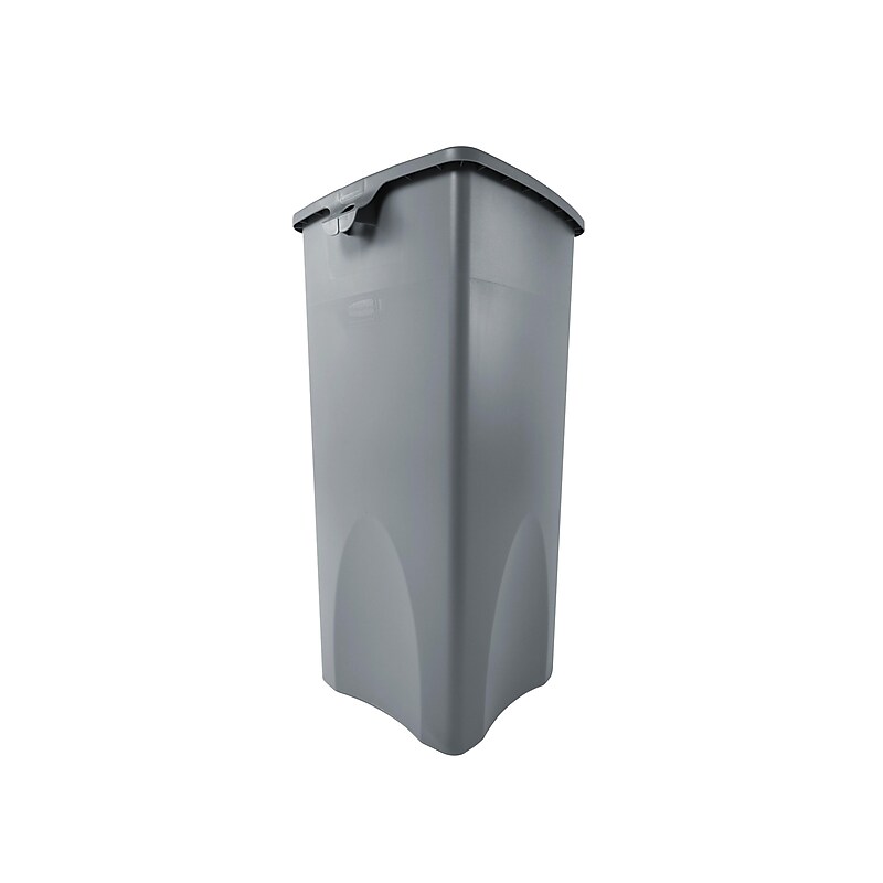 Ensure waste is securely disposed of with this indoor/outdoor trash can. Constructed ofresin, this receptacle is durable and won't puncture or rip. This Rubbermaid Untouchable waste container has a 23-gallon capacity for large amounts of waste and less frequent emptying. Square trash can without lid ensures clean and litter-free space. gal. capacity for large amounts of trash. Made ofresin to offer long-lasting use. Dimensions: 32. 9"H x 15. 5"W x 16. 5"D. Handles for easy lifting. Meets or exceeds ADA standard. 1-year manufacturer limited warranty. Integrated venting channels makes removing bags 50% easier. Provide a convenient waste disposal option with this Rubbermaid Untouchable indoor/outdoor trash can.