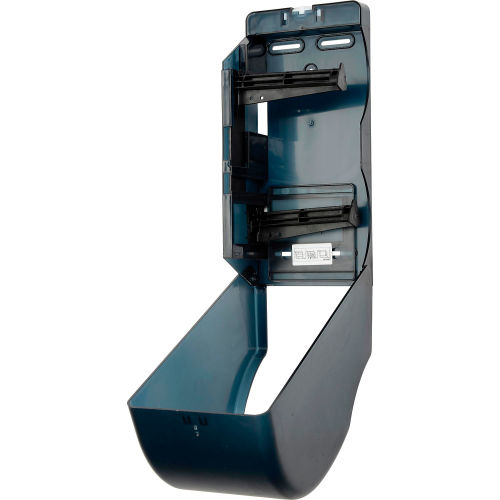 Plastic Standard Double Toilet Tissue Dispenser - Two 5-1/4" Rolls, Smoke Gray/Beige Standard Double Tissue Dispenser allows user to completely use one roll before transferring to the next. Ideal for restrooms in offices, schools, healthcare facilities, and more. Durable plastic construction with translucent, smoke gray cover makes it easy to see when rolls need to be refilled. Standard double toilet paper dispenser features heavy-duty lock helps prevent theft and vandalism. Holds two 5-1/4" tissue rolls. Easy to install. Overall Dimensions: 6"W X 5-3/4"D X 13"H.