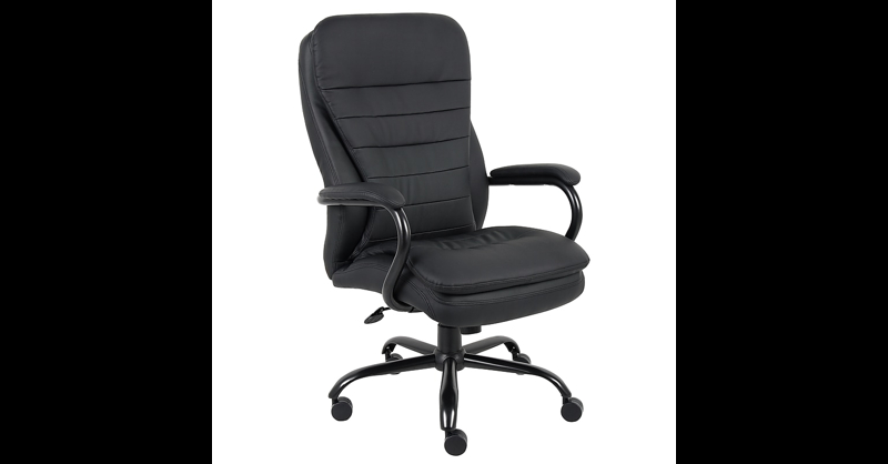 Maneuver around the office easily with this executive chair. Thevinyl material makes it easy to keep clean and provides a sleek, modern appearance. This chair height can be adjusted, so you can easily customize it to just the right level, while the 400-pound capacity makes it an ideal option for those with larger, taller body types. Featuring lumbar support, an extra-deep, extra-wide seat and plush pillow-top cushions, this chair is made to keep you comfortable when sitting for extended periods of time. This Boss Office Products heavy-duty big-and-tall chair has a five-star steel base for increased durability, making it a great choice for long-term use. Executive chair brings style and comfort to your office. Black Double Plush CaressoftPlus chair for softness and a professional look. Pneumatic gas-lift height adjustment allows you to customize the chair to your specific needs. Overall dimensions: 43-45. 5"H x 33. 5"W x 31"D. Seat dimensions: 22. 5"W x 19"D. Back dimensions: 29"H x 23"W. Fixed armrests for supporting your forearms. Tilt with adjustable tension control for comfort. Weight rated up to lbs. Assembly required. Certifications and standards: Meets or exceeds ANSI/BIFMA standards. 6-year manufacturer limited warranty. Enhance mobility around your workspace with this Boss Office Products heavy-duty big-and-tall executive chair.