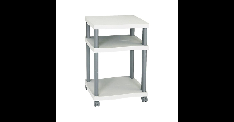 Keep your printer and necessary supplies nearby with this Safco desk side gray/charcoal printer stand. Two shelves and a flat top surface give you plenty of space for a printer and any additional supplies you need by your desk. Perfect for a home office or a personal cubicle, this Safco Wave mobile printer stand is a great way to organize your desk and keep your space neat and efficient. Mobile printer stands are an ideal storage solution for laser or inkjet printer. Multicolor printer stands are made of plastic/poly. Desk-side printer stand features three supply shelves. Four swivel casters (two locking) make moving and positioning the cart simple. Dimensions: 29. 25"H x 20"W x 17. 5"D. Assembly required. The shelves provide storage for paper, ink cartridges, envelopes, etc. Contemporary wave design shelves. Space between posts: 16" front, 11-5/8" side. Weight: 16 lbs. Lifetime mfr. warranty. Easy assembly. . Organize your desk or personal office space with this Safco Wave desk side printer stand.