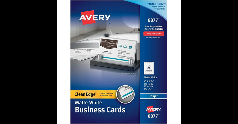Make a lasting impression on important clients, associates and prospective customers with Avery 08877 Clean Edge Business Cards. This pack of 400 first-rate customizable business cards is made from quality cardstock with a weight of 93lbs / 254gsm, and offers an impressively substantial look and feel. If you need professional quality business cards, customer loyalty cards, appointment reminder cards or more, these x 3. 5" cards are an exceptional way to stand out from the crowd. Thesebusiness cards have innovative Clean Edge technology for quick and easy separation, giving you the cleanest, smoothest edges of any business card on the market. Proprietary Avery Sure Feed technology helps deliver a more reliable feed through your inkjet printer in order to minimize print misalignments and paper jams. Whether you have your own design or you're creating one from scratch, take your brand or business to the next level with Avery Design & Print Online, which makes it easy to create and print double-sided customized cards from your own home or business. The free browser-based software has everything you need to design business thank you cards, personalized gift tags, reward cards, price tags and more. Try it out today on the Avery website. Easily customize your own business cards, loyalty cards for business, RSVP cards and more using Avery Design & Print Online and the hundreds of available templates and designs. Enjoy premium quality custom business cards featuring Clean Edge technology that allows cards to be snapped apart easily, leaving behind clean, smooth edges. Each sheet of business card paper features proprietary Avery Sure Feed technology for a more reliable feed through your printer to help reduce misalignments and jams. Print beautiful, double-sided designs onprintable cardstock paper with a weight of 93 lbs / 254 gsm. Perfect for DIY business cards, rewards cards, personalized gift tags, appointment cards and more. Item includes 40 printable sheets with a total of 400 blank x 3. 5" cards. Printable cardstock sheets are optimized for inkjet printers. These Avery Clean Edge two-side printable business cards offer a convenient and affordable way to share your contact information.