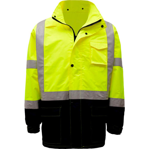 Buy GSS Safety 6003 Class 3 Premium Hooded Rain Coat, Lime with Black Bottom, S/M for $41.95 at @ Globalindustrial.com
