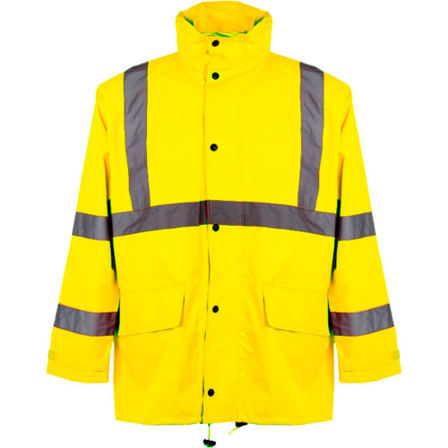 Features: Jacket: 150D Oxford with PU Coating Waterproof with Sealed Seams Zipper with Snap Front 2" Silver Reflective Tape2 Lower Front Pockets with Flaps6001-Lime Jacket Certification: ANSI/ISEA 107-2010 Class 3 6801- Lime Rain Pants sold separately.
