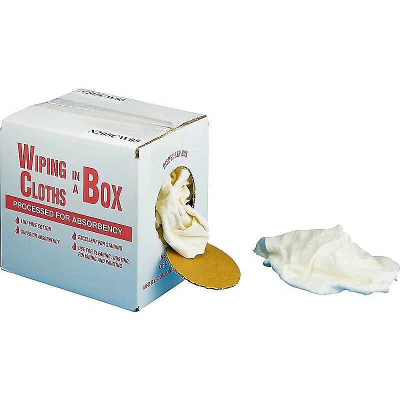 Remove dust and debris from your counters and other surfaces with this 4. 5-pound box of cotton wiping cloths. The convenient box makes them easy to dispense, and the cotton material provides increased absorbency. These UNITED FACILITY SUPPLY wiping cloths are sold in bulk for company use. Dry cloths used for a wide variety of chores, including cleaning, dusting, polishing, painting, and staining. Highly absorbent, washed cotton cloths made from unused 100% recycled pre-consumercolor cloth. Convenient dispenser box includes 4. 5 lbs. of dry cloths in assorted sizes. Unscented, non-toxic to cause less irritation. Keep your home or office clean and dust-free with this 4. 5-pound box of UNITED FACILITY SUPPLY multipurpose reusable cotton wiping cloths.