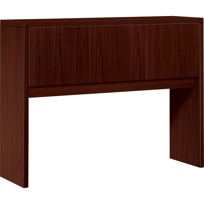 Build a hard-working workstation with 10500 Series laminate from HON, our bestselling desk collection. This stack-on hutch can be mounted to any 48"W base unit to create additional storage. Three doors conceal your personal or work related items. Laminate finish color is A rugged, high-quality desk collection for any organization seeking maximum performance for the price. 37. 13" H x 48. 0" W x 14. 63" D. Woodgrain, solid and patterned surface materials in over 90 combinations let you customize your office environment. Laminate color is Premium, multi-ply laminate stands up to scratches, spills, stains and boiling liquids, and holds up under heavy use. Metal-to-metal fastening system for precise fit and unsurpassed durability. Durable inner-frame construction stands up to the stress of frequent moving and relocation. Concealed drawer handles for an uncluttered look. Makes good use of floor area by utilizing the space above a desk or Credenza for Office Desk or Computer Desk. Backed by the HON Full Lifetime Warranty. Keep your clutter behind closed doors. Durable woodgrain laminate is scratch-, stain- and spill-resistant for years of trouble-free performance. Clean, straight edges deliver a streamlined look. Enclosed storage behind self-closing, adjustable hinged doors. Valance and wire access facilitate optional task lighting. Easy to Assemble (ETA). Model Option: H105323. NN. The best built laminate desk in its price class.