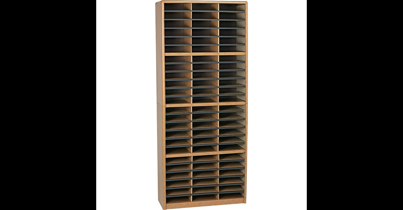 Safco Value sorter literature organizer color comes with steel shell and sleeves for durability. Organizer has 72 heavy-duty corrugated fiberboard compartments that measures 32 1/4" x 13 1/2" x 75" and holds letter size file folders. Steel shell and support shelves, heavy-duty corrugated fiberboard compartments. Compartments measure 2 1/2"H x 9 3/4"W x 12 1/2"D and hold up to 550 sheets. 72-compartments. 75"H x 32 1/4"W x 13 1/2"D. Wide shelf fronts have label holders (labels included). Quick-lock assembly makes set up fast and easy. Economical and efficient storage and organization of forms, literature, catalogs, etc. Safco limited lifetime warranty. Contains 10% recycled content. ⚠ WARNING: This product can expose you to chemicals including Lead, which is known to the State of California to cause cancer or birth defects or other reproductive harm. For more information go to www. P65Warnings. ca. gov/furniture. Keeps literature accessible and organized in multi-compartment cabinets.
