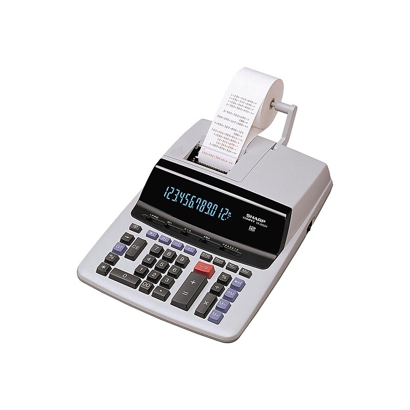 Produce records of accounting and financial calculations with this commercial printing calculator. The two-color ribbon differentiates between positive and negative numbers, while the simple load design makes it easy to add a new roll of paper when needed. This calculator boasts a large fluorescent display for comfortable viewing as you work. With two independently accessible four-key memory functions, this device lets you recall past figures with the touch of your finger. Use the item count option to ensure accurate recording of checks and other individual entries. Featuring print capabilities of up to 4. 8 lines per second, this Sharp commercial calculator keeps up with the speed of your business. Printing calculator offers 12-digit VFD display for convenient viewing. Makes fast printouts for documentation purposes. Powered by any standard AC outlet, eliminating the need for expensive batteries. 4-key memory keeps often-used figures accessible for faster calculations. Streamline financial calculations with tax calculation, cost, sell, margin, and item counter functions. Package content: AC adapter. Decimal switch, rounding switch, percent, sign change, constant calculation, double zero, and grand total functions help you solve a variety of mathematical problems. Prints positive numbers in black and negative numbers in red, eliminating misreads. Comes limited warranty. Get accurate results for daily tallies, tax calculations, and a range of other business math problems with this Sharp 12-digit commercial printing calculator.
