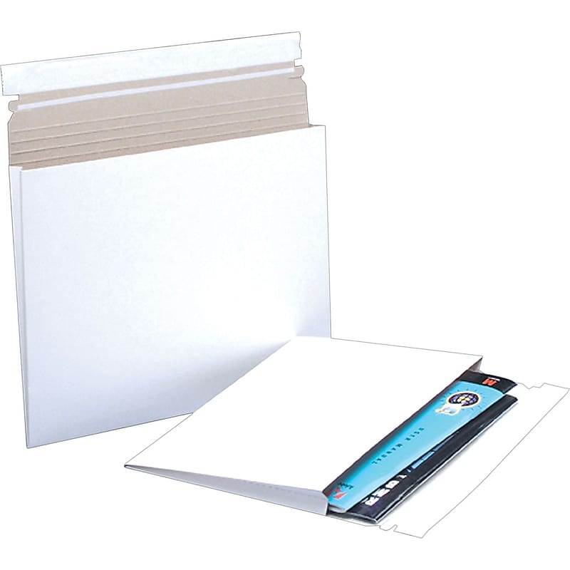 These mailers feature a rigid chipboard construction that protects contents from bending and crushing. Gusseted design expands to accept items up to 1" wide. Ship fragile items safely. Features a peel and seal closure. Convenient pull tab tear strip for easy opening. Additional stiffeners not required. Light-weight to save on postage. Attractivemailers for a professional look.