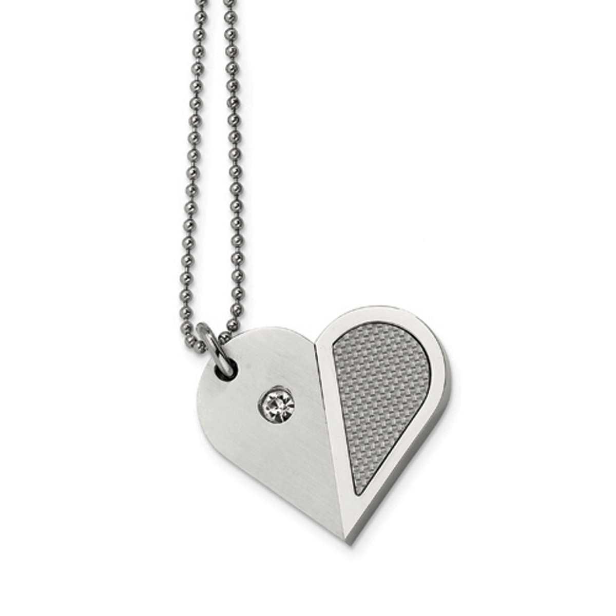 This Mens Gentlemen's Classics(tm) convertible dog tag necklace displays a black and grey carbon fiber inlay that is iced with a dazzling cubic zirconia stone for a classic appeal. Its design is highly polished and hangs from a long beaded chain that is secured with a fancy lobster clasp for closure. Chain length: 22" Pendant size: 38mm x 40mm.