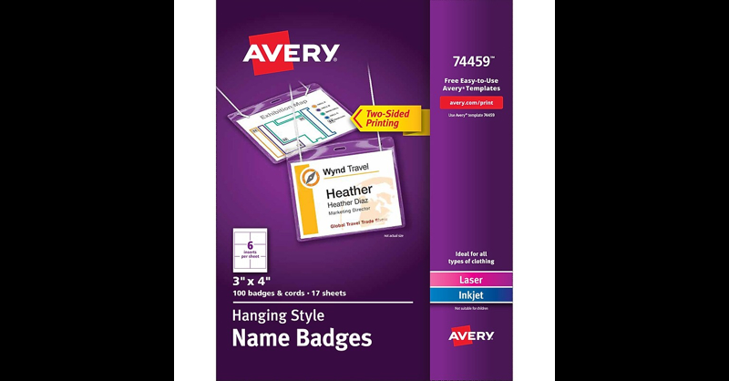 Quickly and easily create professional hanging name tags from the convenience of your home or workplace. This pack of 100 blank name tags with cords is perfect for temporary identification at professional and social gatherings like meetings, trade shows, company mixers, reunions and more. Importing names, job titles and company logos is fast and easy with the free online design software on the Avery website. Avery Design & Print also includes hundreds of free designs and Avery templates to help you easily create professional-quality custom name badges in no time. The 8. 5" 11" insert sheets are printable on both sides and optimized for both laser and inkjet printers to result in crisp, smudge-free printing. Durable, clear plastic ID badge holders are reusable and display names clearly while the pocket-style design makes loading inserts quick and easy. Each name tag holder features a hanging neck cord to keep name ID tags in place without damaging clothing or flipping over. Hanging name badges are great for multi-day events like conventions, conferences, festivals and more. Keep your name tags within view and easily accessible with these clear plastic badge holders with cords. Quickly create custom name tags with personal titles, company names, logos and more using free Avery templates and designs on the Avery website. Print on both sides of the blank name tag inserts to create professional double-sided designs. Get crisp, smudge-free printing with printable name tag insert sheets optimized for both laser and inkjet printers. Ideal for meetings, seminars, trade shows, corporate event planning, conferences and more, the hanging style name badge holders keep ID badges in place without damaging clothes. Made from plastic for durability. Garment-friendly clip helps protect clothing. 100 neck straps included. Two-side printing capability provides more space for important information. Identify exhibit vendors, building visitors or event attendees with these Avery 3 4-inch white hanging name-badge kits.