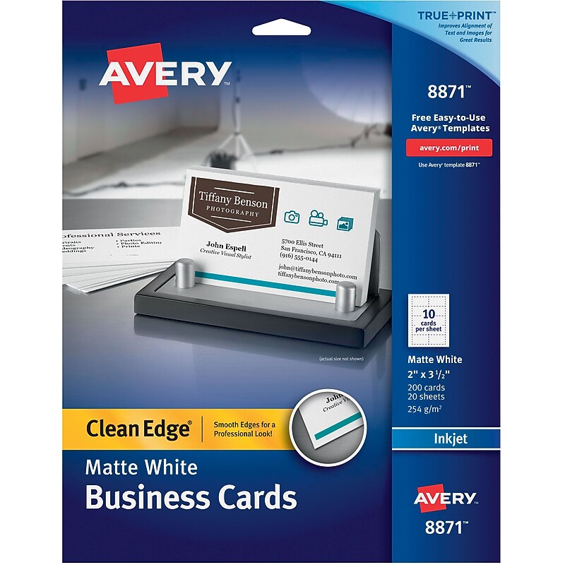 Avery Clean Edge Business Cards, x 3 1/2", Matte 200 Per Pack (8871)