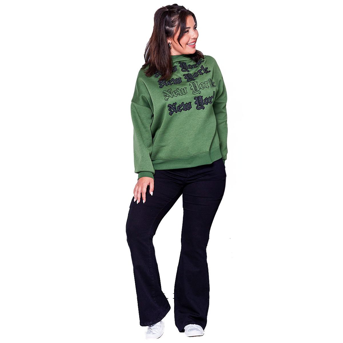 Pattern: Solid Sleeve Length: Long Sleeve Neck: Crew Neck Banded sleeve hems Comfortably relaxed fit Soft fleece lining "New York" applique script on front.