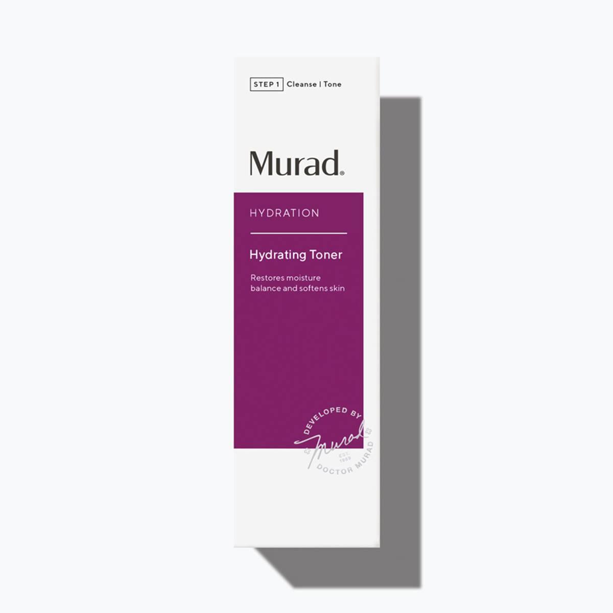 An alcohol-free Murad toner that replenishes lost moisture to refresh skin and prepare it for treatment. Suggested usage: Apply evenly over clean face, neck, and chest. Follow with a Murad step two treatment. Precautions: For external use only. Avoid contact with eyes. Keep out of reach of children. Benefits: Features limited-edition Hydration packaging to celebrate Murad's 30-year anniversary as the skincare hydration experts. Ingredients: Lecithin and Grape Seed Extract: Help lock in moisture and restore suppleness. Peach and Cucumber Fruit Extracts: Soothe irritation and soften skin. Osmolytes: Help regulate water balance for optimal hydration levels. Water, Butylene Glycol, Witch Hazel Water, Urea, Yeast Amino Acids, Trehalose, Inositol, Taurine, Betaine, Carrageenan Extract, Peach Fruit Extract, Anthemis Nobilis Flower Extract, Sodium PCA, Lecithin, Tocopherol, Magnesium Ascorbyl Phosphate, Grape Seed Extract, Cucumber Fruit Extract, PEG-12 Dimethicone, PEG-40 Hydrogenated Castor Oil, Sodium Citrate, Disodium EDTA, Chlorphenesin, Methylisothiazolinone, Benzyl Salicylate, Geraniol, Linalool, Citronellol, Fragrance, Orange 4 (CI 15510), Red 4 (CI 14700).