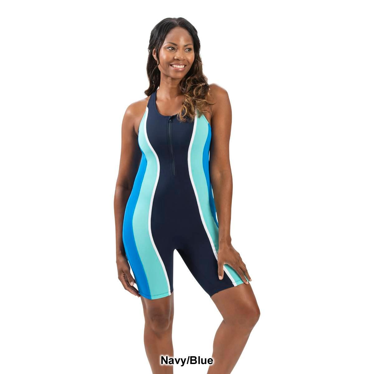 Womens Dolfin(R) Aquashape Color Block Zip Front Aquatard Swimsuit