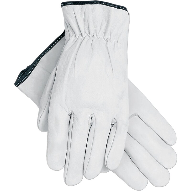 Memphis Gloves Large driver's gloves color are made of premium grade goatskin leather for enhanced durability. Gloves with slip-on cuff feature shirred elastic back, color-coded hem for easy identification and are ideal for industrial work. Premium grain goatskin leather driver's gloves with slip-on cuff. Size: Large. Exceptional durability. Greater softness for sense of touch. Shirred elastic back. Straight Thumb. Color-coded hem to identify size. Drivers gloves. 12 pairs. Cuff Leather, slip-on - open. 6. 35"(H) x 4. 35"(W) x 3. 8"(D). Application: Carpentry, construction, driving, equipment operation, farming, horseback riding, landscaping, tractor trailer operators, fork lift operations. Lining: Unlined. Straight thumb, shirred-elastic back. Thread type: Poly/cotton. CE: 2 abrasion. Palm: Leather, leather type: White, goat. Includes Memphis glove large driver style gloves for 127-3601L / 300006-885. Excellent tensile strength, shirred-elastic back. CE approval. Weight: 1. 996 lbs. ⚠ WARNING: This product can expose you to chemicals including Leather Dust, which is known to the State of California to cause cancer or other reproductive harm. For more information, go to: www. P65Warnings. ca. gov. Industrial and warehouse work gloves for many applications.