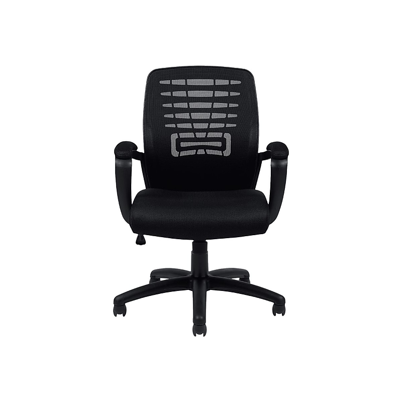 Go easy on your joints with this Offices To Gomesh manager's chair. The back is made with synthetic mesh fabric for lightweight breathability and comfort, while the swivel and tilt features let you customize the chair to fit your body perfectly. This chair features a scuff-resistant arched base and twin-wheel carpet casters for easy rolling across multiple surfaces. With a generously proportioned waterfall-shaped seat that alleviates stress on your knees and the padded adjustable armrests that provide support for your elbows and shoulders, this Offices To Gomesh manager's chair is ideal when you're working long hours at a desk or computer. Mesh manager's chair gives breathable support. Black mesh upholstery allows air to circulate. Pneumatic gas lift height adjustment allows you to customize the chair to your specific needs. Overall dimensions: 40. 5"H x 27"W x 24"D. Seat dimensions: 20"W x 18. 5"D. Adjustable arms for supporting your forearms. Tilt with adjustable tension control for comfort. Meets or exceeds ANSI/BIFMA and GREENGUARD standards. Sit comfortably during lengthy work sessions with this Offices To Gomesh back manager's chair.