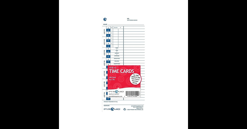 Pyramid Time Cards for 3000HD, 3500, 3500SS, 3550SS, 3600SS, 3700 Time Clocks, 100/Pack ()