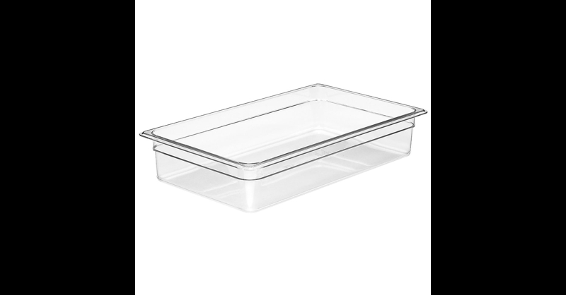 Cambro Camwear qt Full-size food pan is a food storage unit that is ideal for commercial food services. Clear pan measuring 4" x 20 7/8" features a non-stick inner surface for greater ease and is made of polycarbonate plastic for durability. Polycarbonate. 4'' H 20 7/8'' W Cap. Full-size food pan, Clear polycarbonate, Non-stick interior surface. Polycarbonate. 4'' H 20 7/8'' W Cap. This food pan from Cambro features Full-size food pan, Clear polycarbonate, Non-stick interior surface. It is made of Polycarbonate.