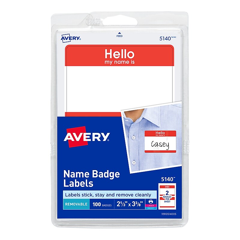 Buy Avery "Hello My Name Is" Name Badge Labels, 2 1/3" x 3 3/8", White with Red Hello, 100 Labels Per Pack (5140) for $5.90 at @ Globalindustrial.com