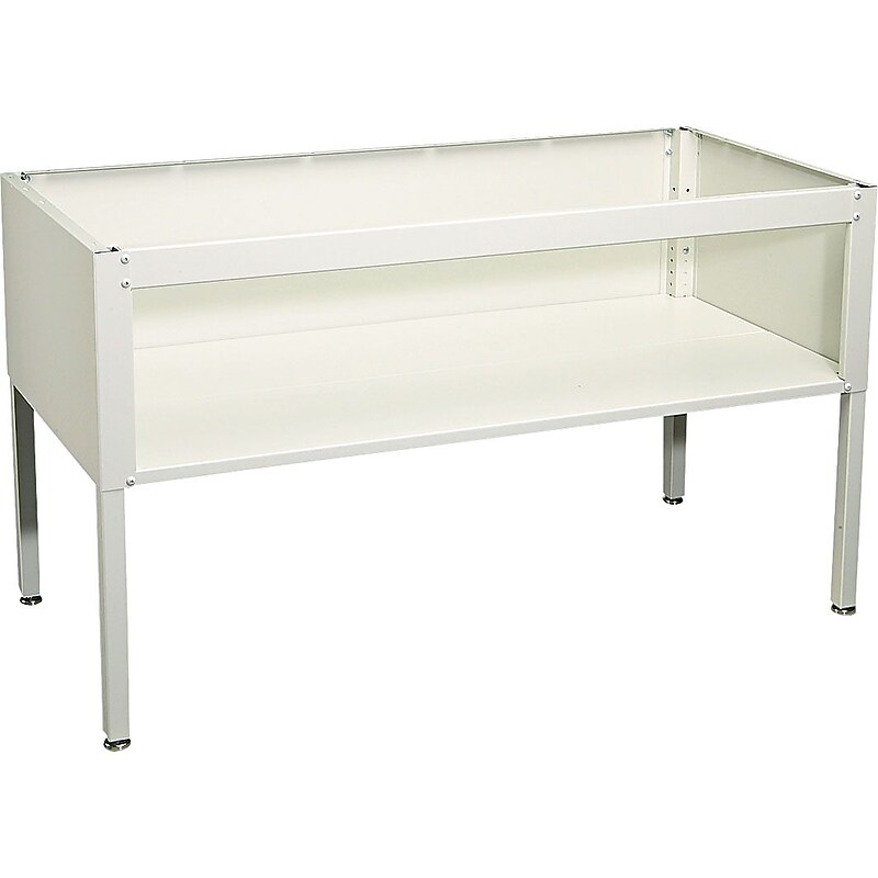 Safco Steel Sorting Table Base is height adjustable and features a convenient bottom storage shelf with 14" clearance. 28"-36"H x 30"D x 60"W. Extra-thick, 1 1/2" steel legs. Lightfinish. Includes bottom shelf for additional storage space, 14" clearance and 150 lb. capacity. Components can be used individually or in combination. Heavy-gauge furniture-grade steel construction supports up to 500 lb. Adjusts in height from 28" to 36" for standing or sitting use. Leg levelers provide stability. Assembles quickly and easily. Contains 10% recycled content . Safco E-Z Sort Table base can hold up to 500 lbs. on 11/2" extra thick steel legs.